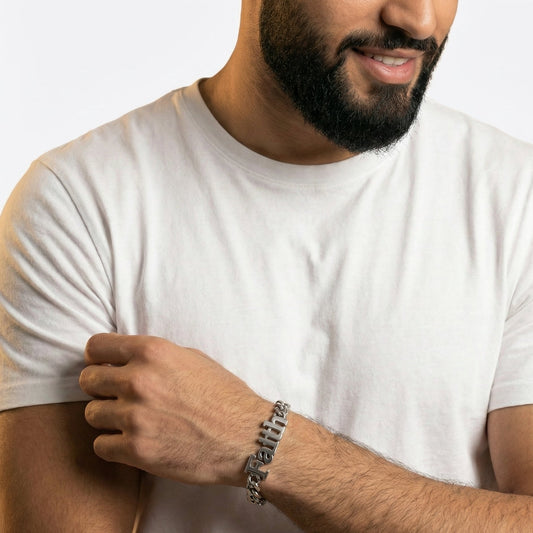 SAVE 21%"Faith" Cuban Chain Men Bracelet